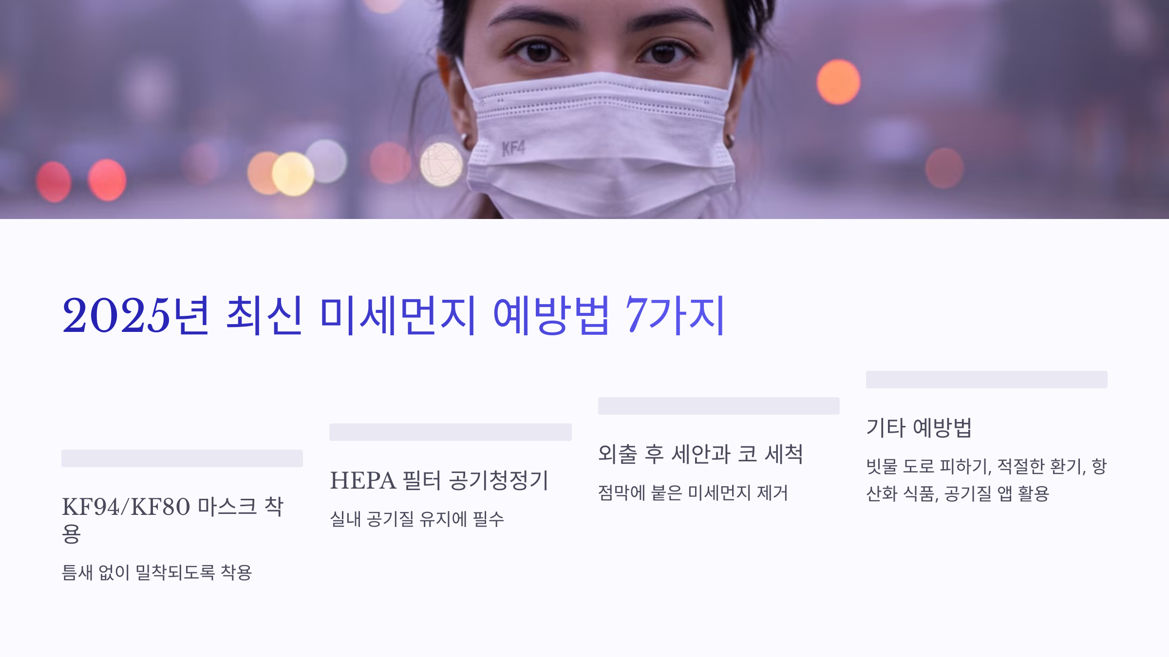 전문가 팁: 일반 마스크는 초미세먼지를 차단하지 못합니다. 반드시 KF94 이상의 마스크를 사용하세요.
