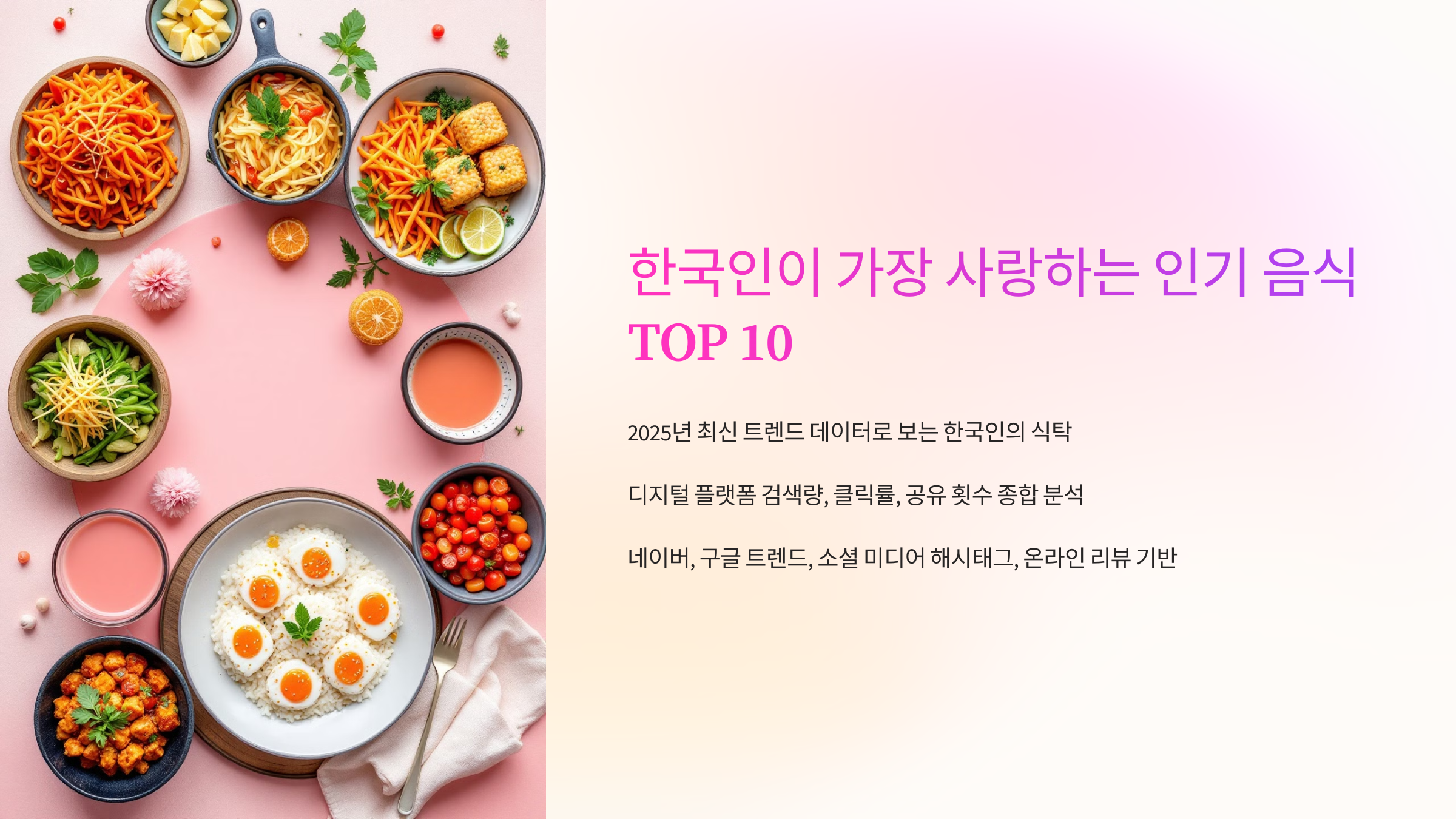 2025년 현재, 디지털 플랫폼에서 집계된 검색량, 클릭률, 공유 횟수를 종합 분석한 결과, 한국인의 식탁에서 가장 사랑받는 메뉴들이 명확하게 드러났습니다.